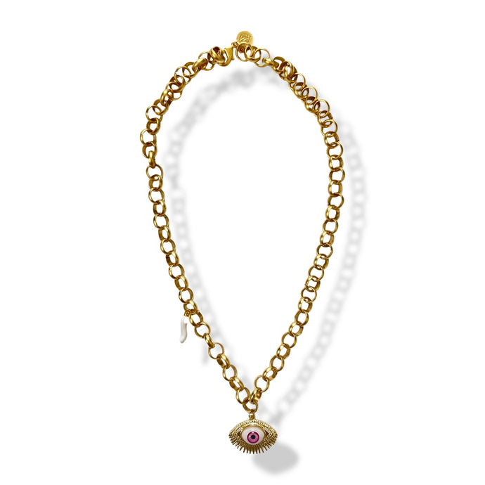 PINK EVIL EYE NECKLACE\CHOKER